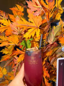 NOVEMBER SKIES Vodka, Blueberry Syrup, Ginger Beer, Lime Juice, Garnish with Mint, Lime Juice, Blueberries